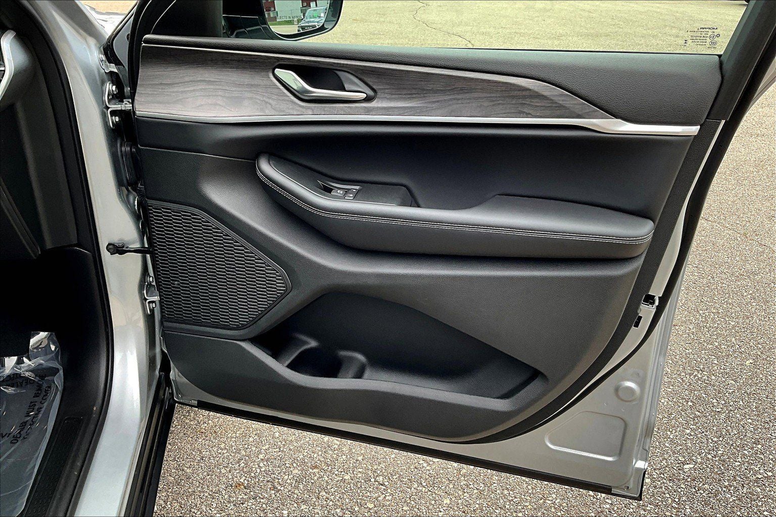 The exterior of the Grand Cherokee L Limited boasts a sleek, sophisticated Silver Zynith color, complemented by the Black Appearance Package that includes bold black accents and 20-inch gloss black wheels. This SUV has a commanding presence on the road, yet it maintains a refined, elegant aesthetic.