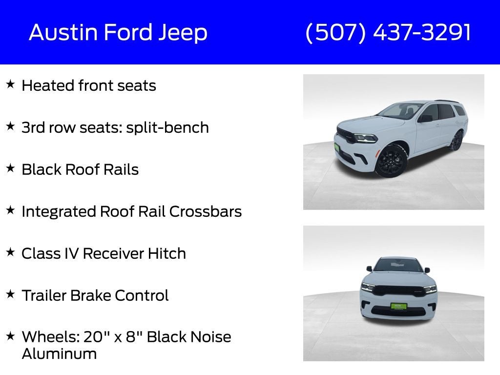 This Durango GT is a testament to Dodge's commitment to engineering excellence. With its powerful performance, advanced technology, and refined design, it's the perfect companion for those who demand more from their SUV. Visit our showroom today and experience the thrill of driving this exceptional vehicle. Price includes: $1000 - 2026 National Engine Retail Bonus Cash . Exp. 02/02/2026 $1250 - 2026 Midwest BC Bonus Cash . Exp. 02/02/2026 $2000 - 2026 National Select Inventory Bonus Cash. Exp. 02/02/2026 $1,000 - Exp. 12/31/2026