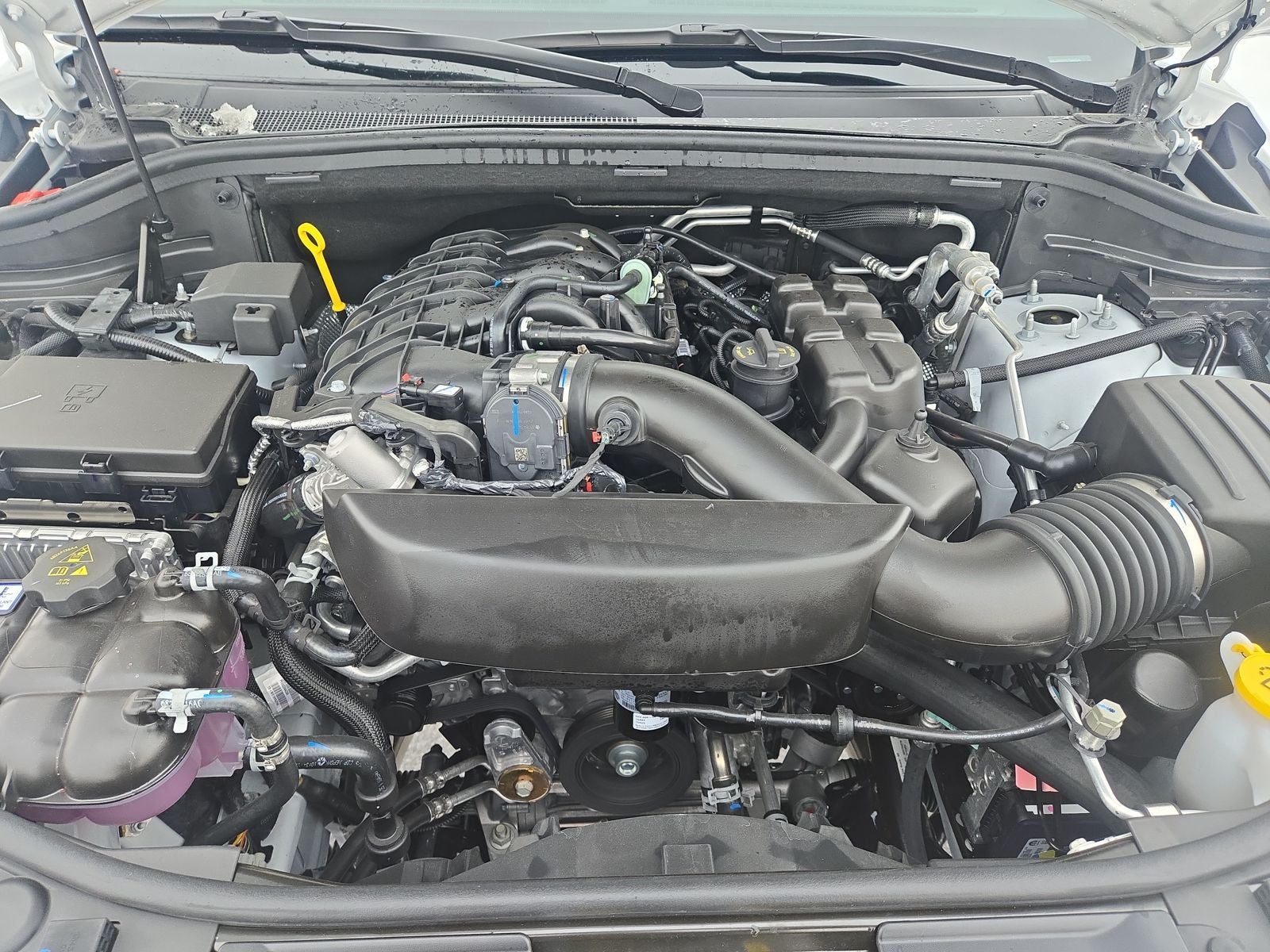 The exterior of this Durango GT exudes a commanding presence, dressed in a sleek White hue and accentuated by the Blacktop Package's striking Gloss Black accents. The 20 Black Noise Aluminum wheels and integrated roof rail crossbars add a touch of sophistication, while the Trailer Tow Group IV ensures you can haul your larger toys with ease.
