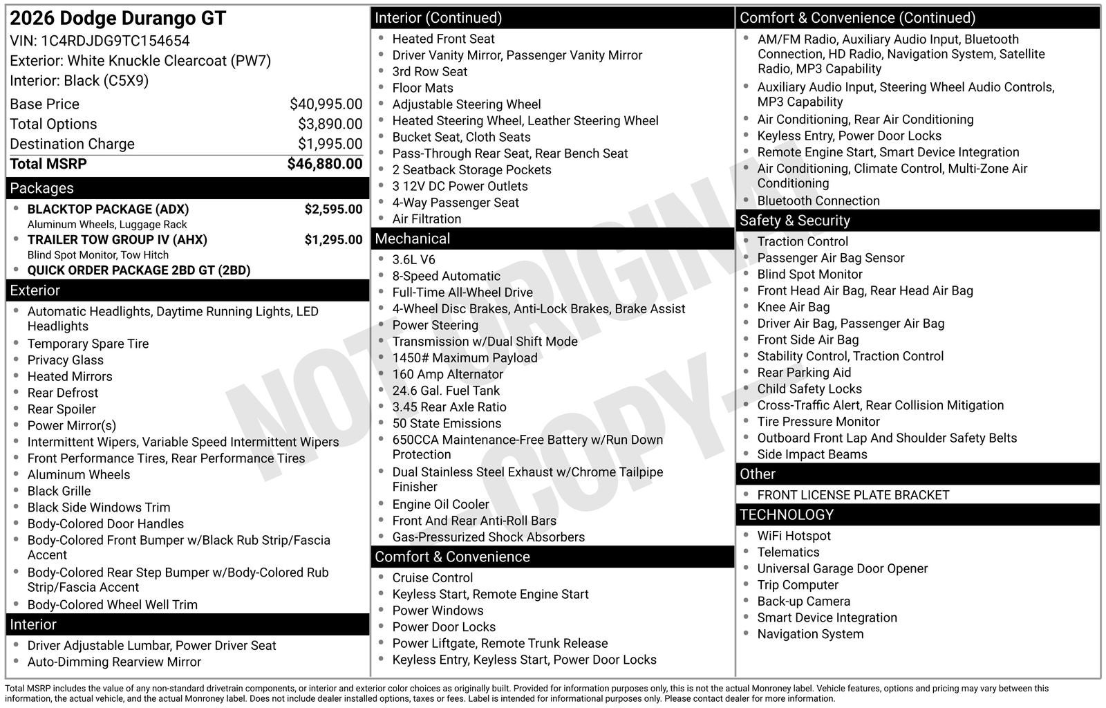 This Durango GT is equipped with a remarkable array of features, including: